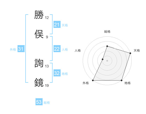 勝俣 詢鏡さんの天格は21画の5点!