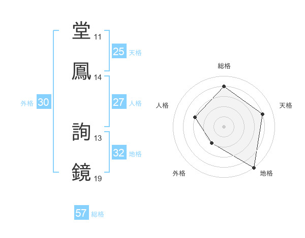 堂鳳 詢鏡さんを姓名の画数から五運を鑑定