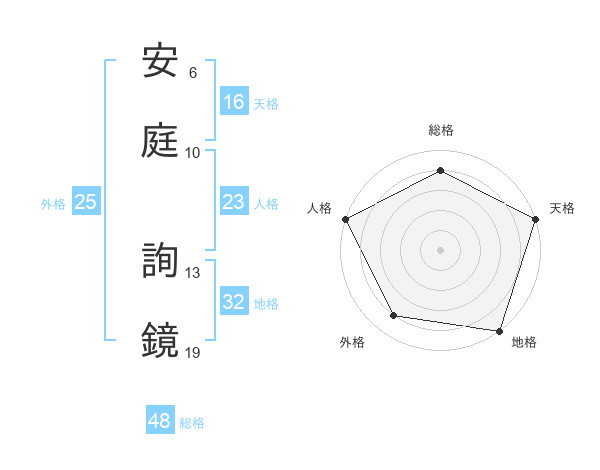 安庭 詢鏡さんを姓名の画数から五運を鑑定