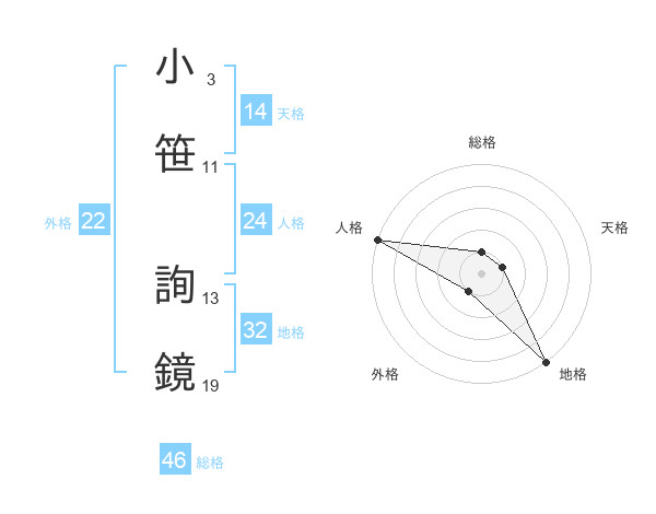 小笹 詢鏡さんを姓名の画数から五運を鑑定