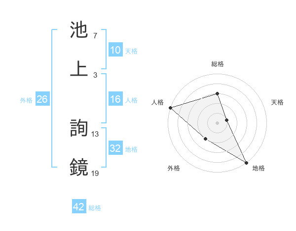 池上 詢鏡さんを姓名の画数から五運を鑑定