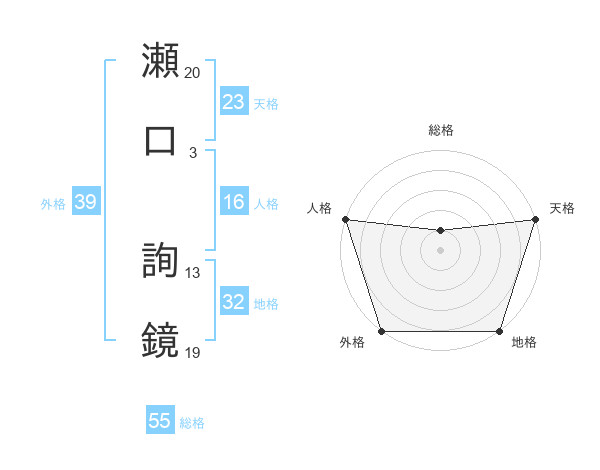 瀬口 詢鏡さんの総格は55画の1点!