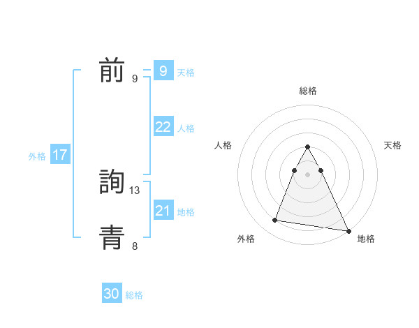 前 詢青さんの総格は30画の2点!