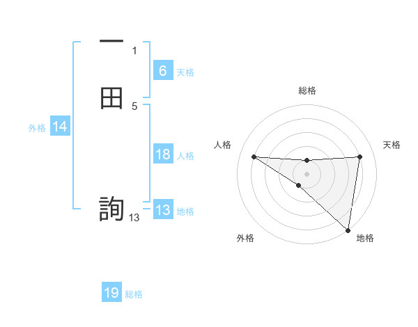 一田 詢さんの地格は13画の5点!