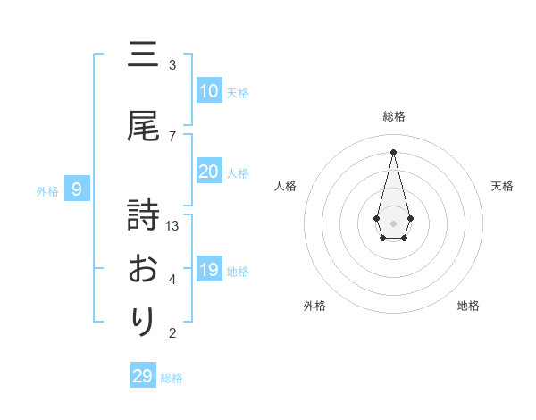 三尾 詩おりさんを姓名の画数から五運を鑑定