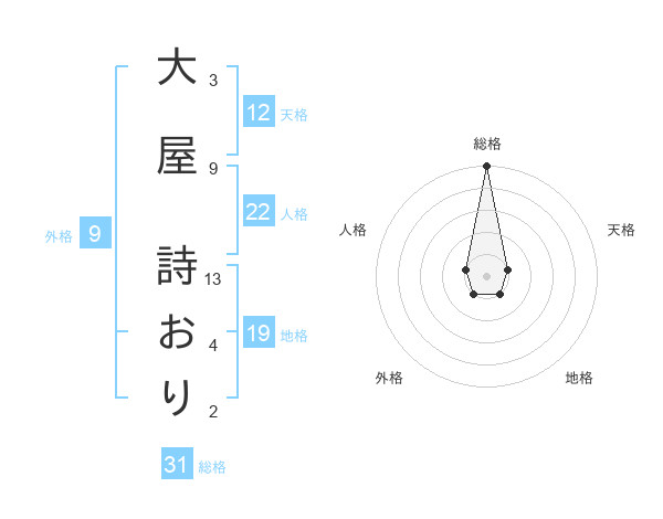 大屋 詩おりさんを姓名の画数から五運を鑑定