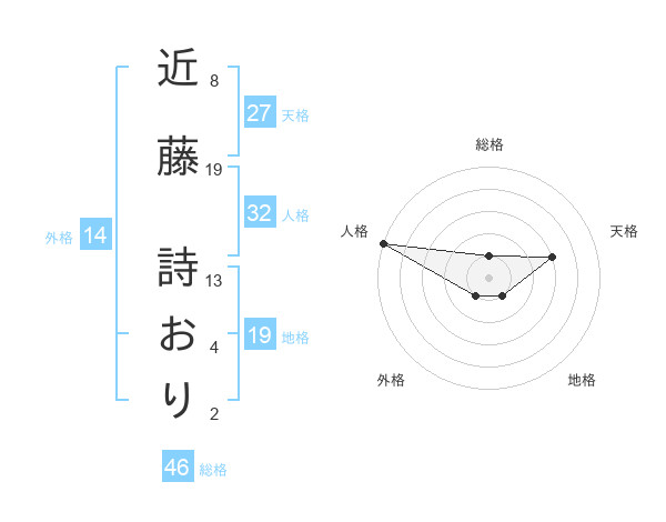 近藤 詩おりさんを姓名の画数から五運を鑑定