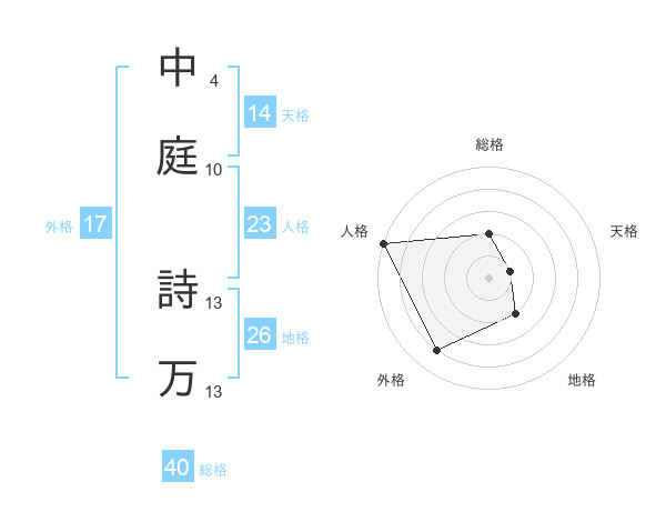 中庭 詩万さんの総格は40画の2点!