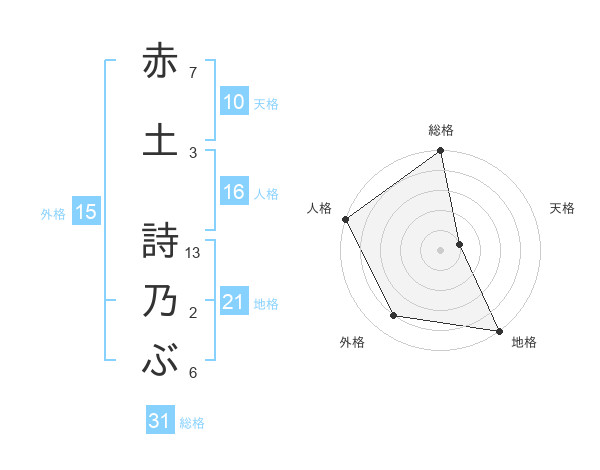 赤土 詩乃ぶさんを姓名の画数から五運を鑑定