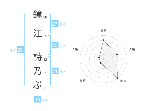 鐘江 詩乃ぶさんの総格は48画の4点!