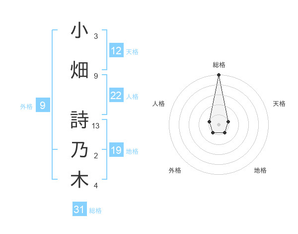 小畑 詩乃木さんの総格は31画の5点!