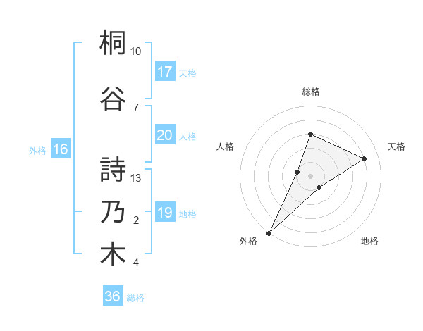 桐谷 詩乃木さんを姓名の画数から五運を鑑定