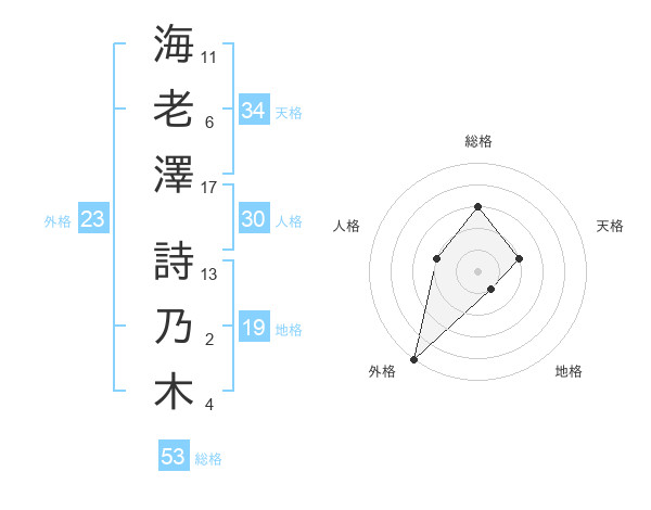 海老澤 詩乃木さんの外格は23画の5点!