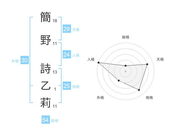 簡野 詩乙莉さんの天格は29画の4点!