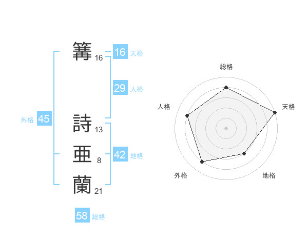 篝 詩亜蘭さんの総格は58画の4点!