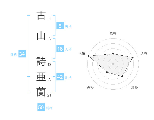 古山 詩亜蘭さんの総格は50画の2点