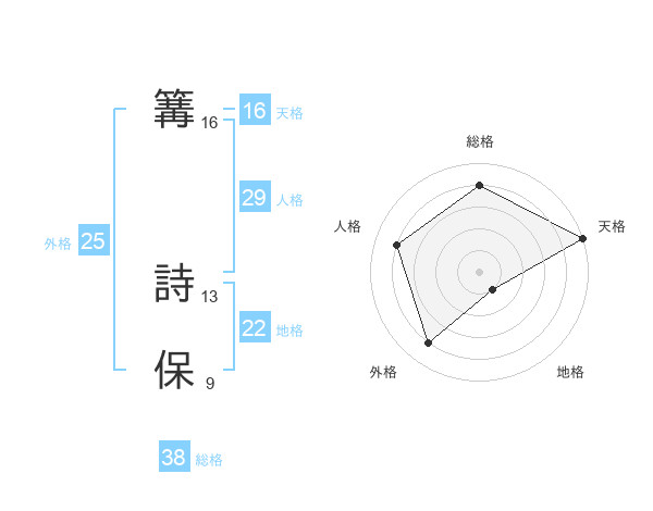 篝 詩保さんの天格は16画の5点!