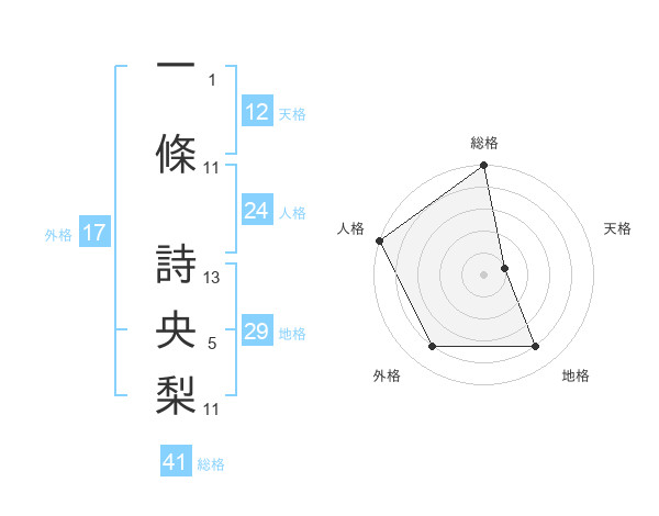 一條 詩央梨さんの外格は17画の4点!
