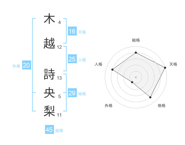 木越 詩央梨さんを姓名の画数から五運を鑑定
