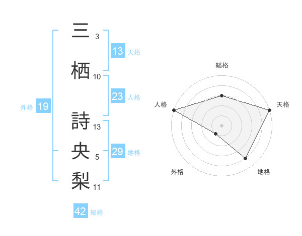 三栖 詩央梨さんの天格は13画の5点!