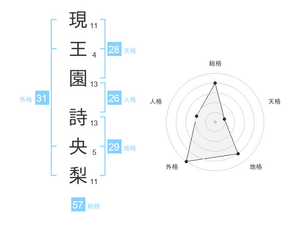 現王園 詩央梨さんの外格は31画の5点!