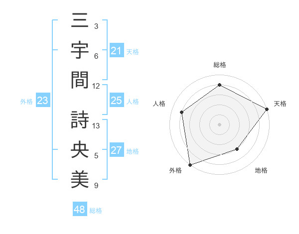 三宇間 詩央美さんを姓名の画数から五運を鑑定