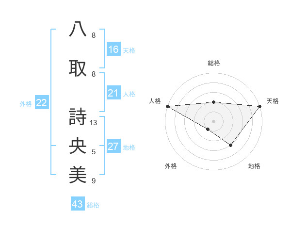 八取 詩央美さんを姓名の画数から五運を鑑定