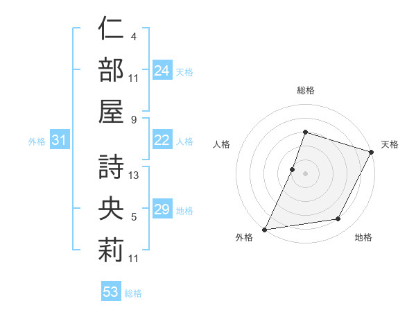 仁部屋 詩央莉さんの天格は24画の5点!