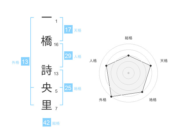 一橋 詩央里さんを姓名の画数から五運を鑑定