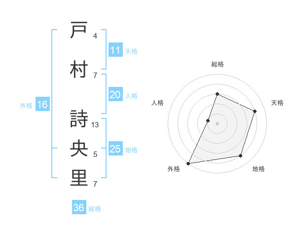 戸村 詩央里さんを姓名の画数から五運を鑑定