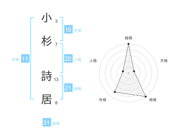 小杉 詩居さんを姓名の画数から五運を鑑定