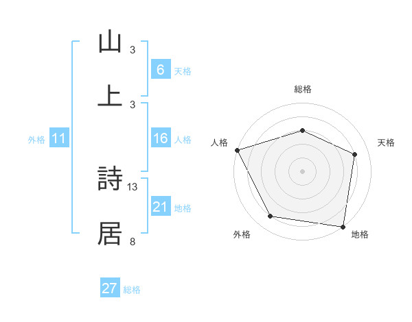 占い結果は姓名判断である以上、良い場合も悪い場合もありますが、決してお名前を誹謗中傷するものでなく、画数の自動計算によって得られたものです。また、本サイトの検索によって得られた鑑定結果で、第三者を誹謗中傷したり名誉を棄損するような行為を禁じます。