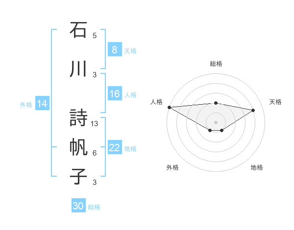 石川 詩帆子さんを姓名の画数から五運を鑑定