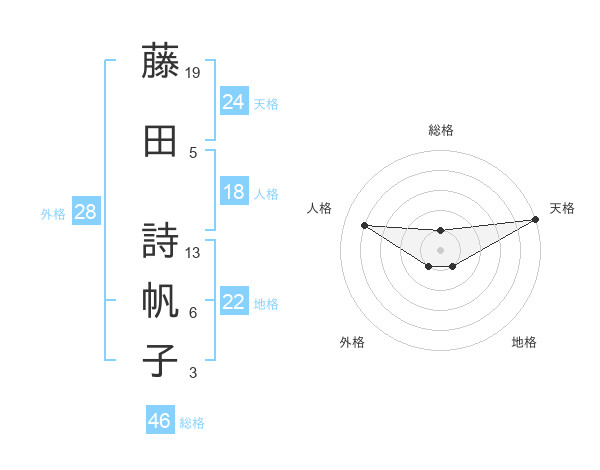 藤田 詩帆子さんを姓名の画数から五運を鑑定
