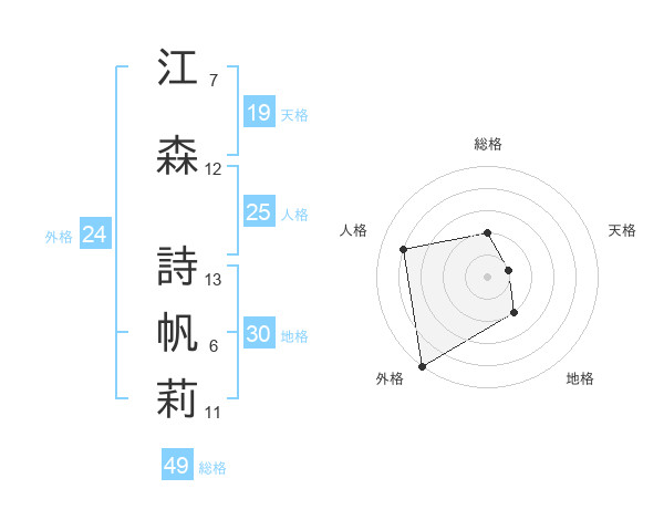 江森 詩帆莉さんを姓名の画数から五運を鑑定