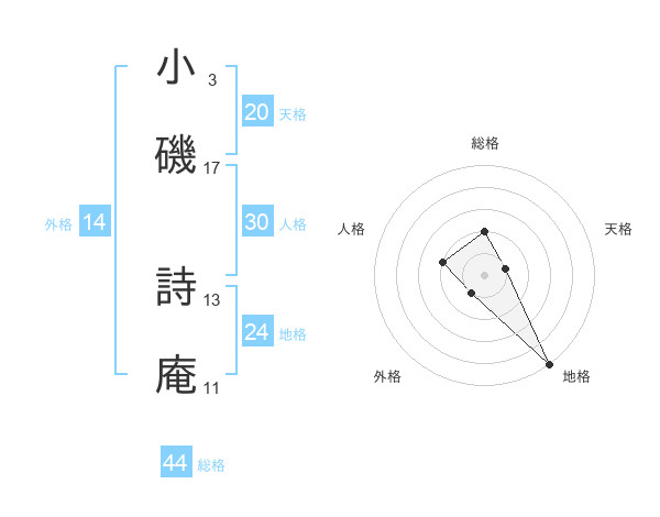 小磯 詩庵さんを姓名の画数から五運を鑑定