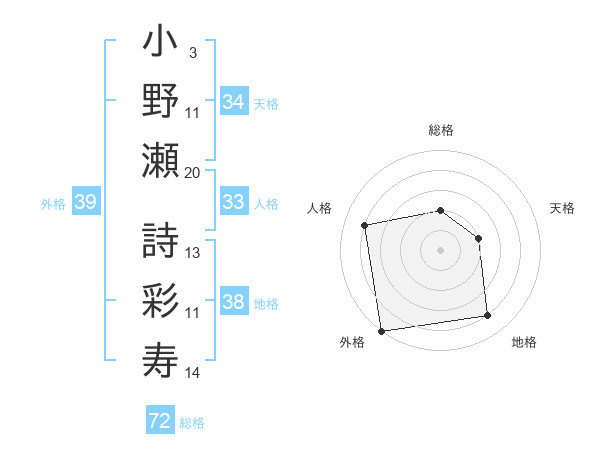 小野瀬 詩彩寿さんの外格は39画の5点!