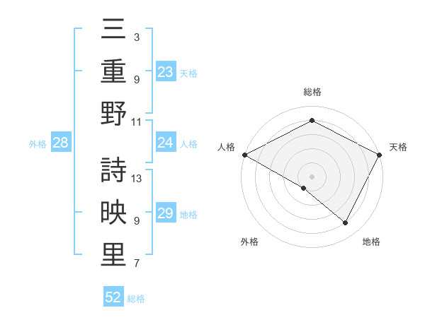 三重野 詩映里さんを姓名の画数から五運を鑑定