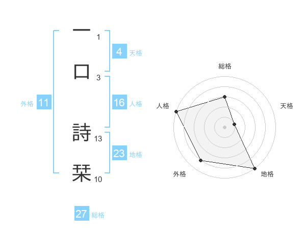 一口 詩栞さんを姓名の画数から五運を鑑定