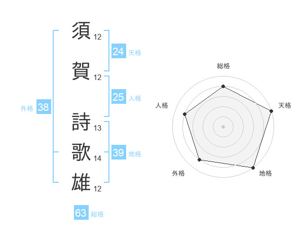 須賀 詩歌雄さんの地格は39画の5点!