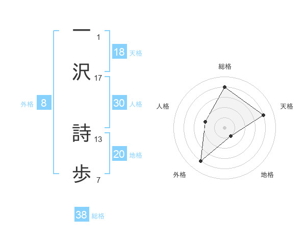 一沢 詩歩さんの天格は18画の4点!