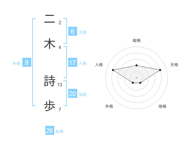 二木 詩歩さんを姓名の画数から五運を鑑定
