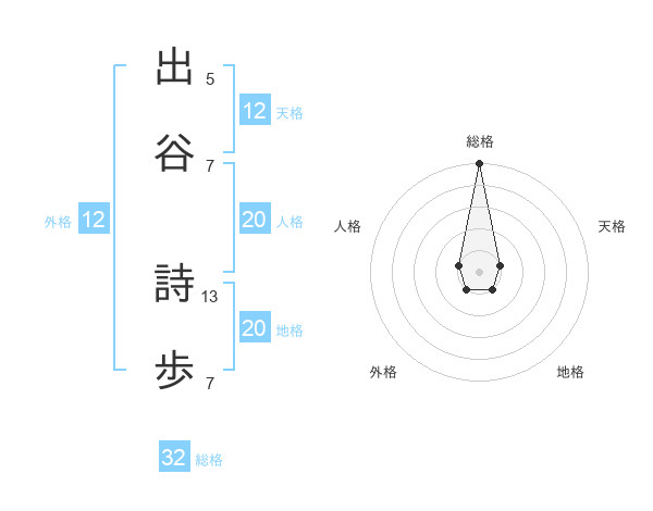 出谷 詩歩さんを姓名の画数から五運を鑑定