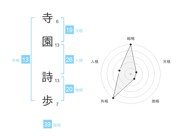 寺園 詩歩さんの外格は13画の5点!