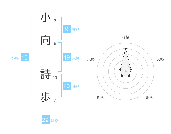 小向 詩歩さんを姓名の画数から五運を鑑定