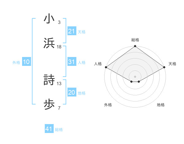 小浜 詩歩さんの天格は21画の5点!