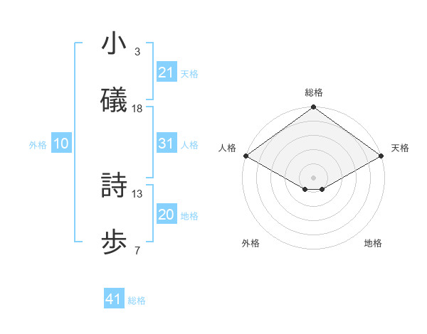 小礒 詩歩さんを姓名の画数から五運を鑑定