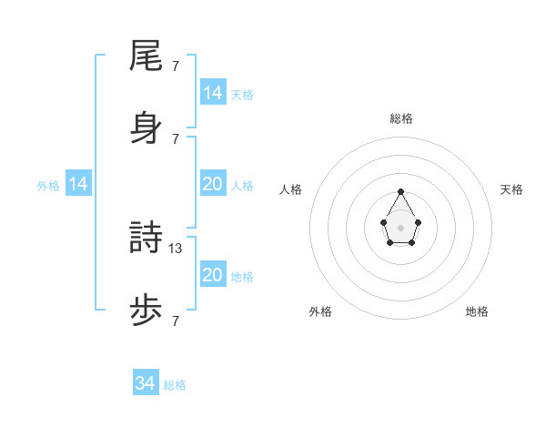 尾身 詩歩さんの総格は34画の2点!