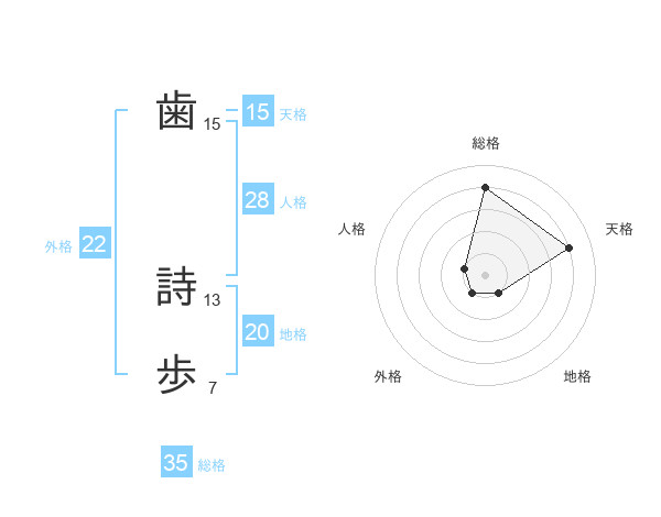 歯 詩歩さんの総格は35画の4点
