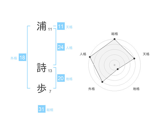 浦 詩歩さんの外格は18画の4点!